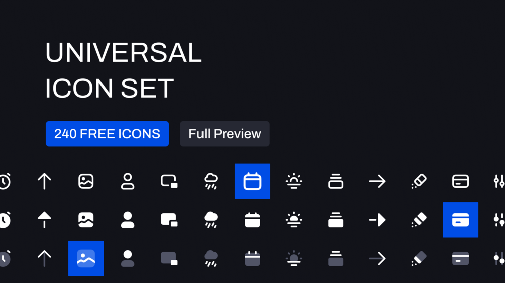 Universal Icon Set is a high-quality icon set for websites, apps, social networks, prints, billboards and even for a postcard for your mom.